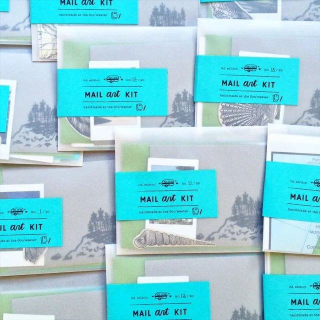 The final Mail Art Kits contained everything needed to mail 3 letters, including postage. A limited edition of 20 were created specifically for visitors of the Sou'wester, available only in the adorable Lodge shop.